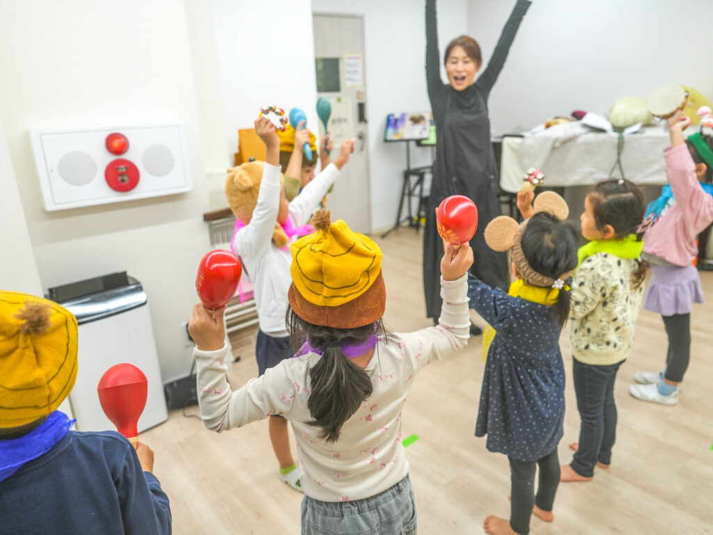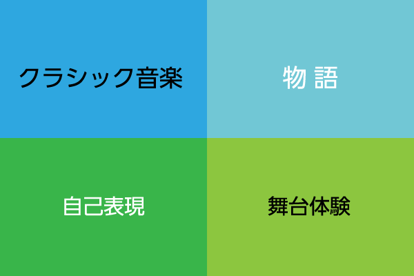 お子様が本来持っている能力を引き出します。楽しいレッスンを心がけているので、安心してご参加ください。発生、音であそび、からだで感じて、小さな「できた!」をどんどん増やしていきます。親子で遊ぶように身についたさまざまな『できること」が身につきます。